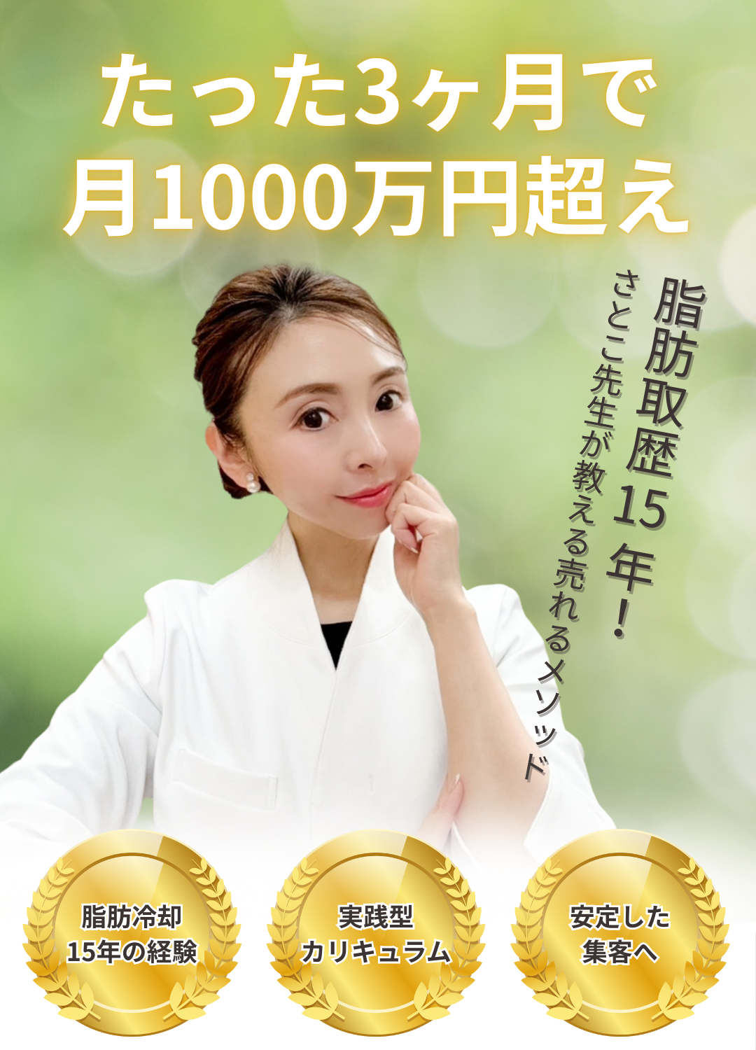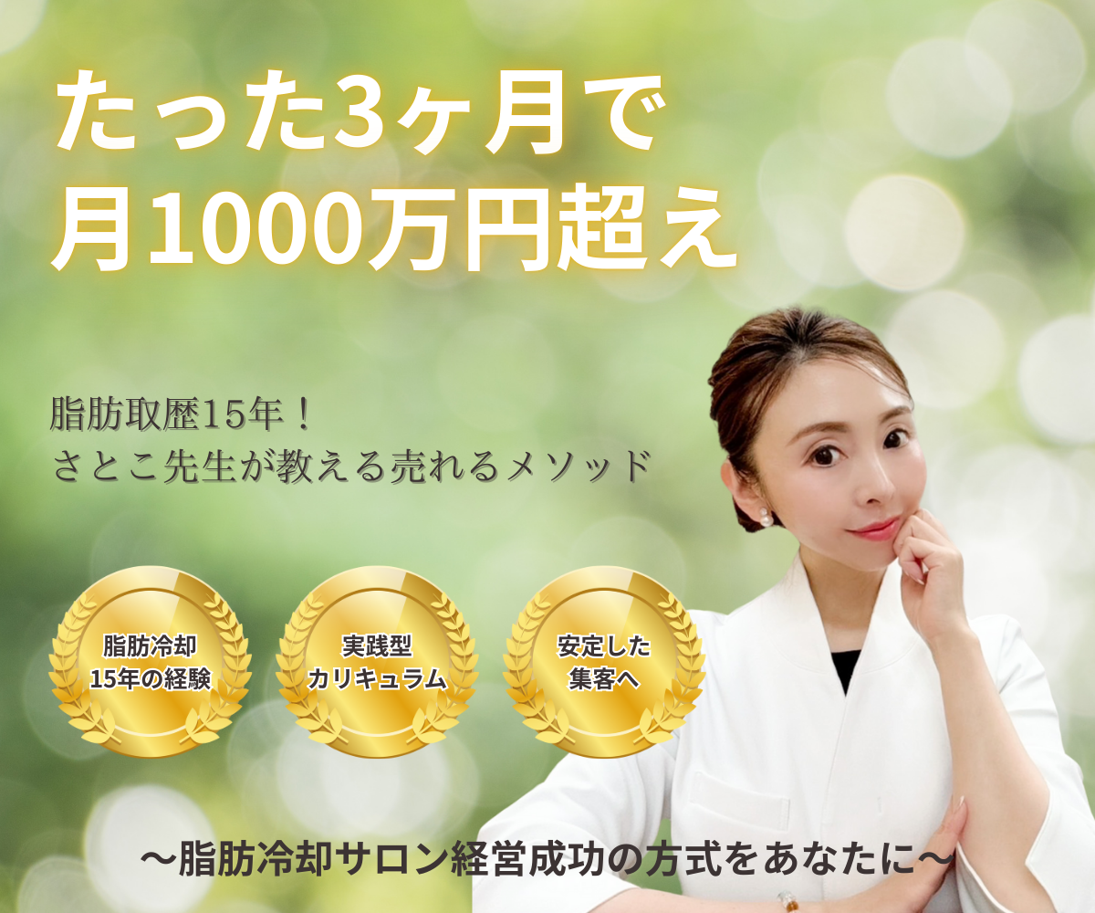 現役で脂肪冷却サロンを経営し、SNSだけで月商1,000万円を達成した講師が“リアルなノウハウ”を直接お伝えする点です。